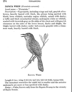 The writeup to the right is from Bond’s 1936 edition of Birds of the West Indies. Note the local name for the wren.