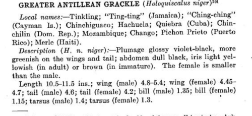 Bond, of course, wrote about them in Birds of the West Indies (1936, bottom), giving the Jamaican nickname as “Ting-Ting.” He added “Cling-cling” by the 1961 edition.