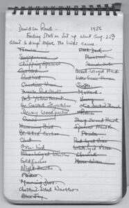 On one of Mary Wickham Bond’s notepads for the summer of 1956, I found the list on the left. They were living on Davidson Road in Chestnut Hill, Pa., at the time.